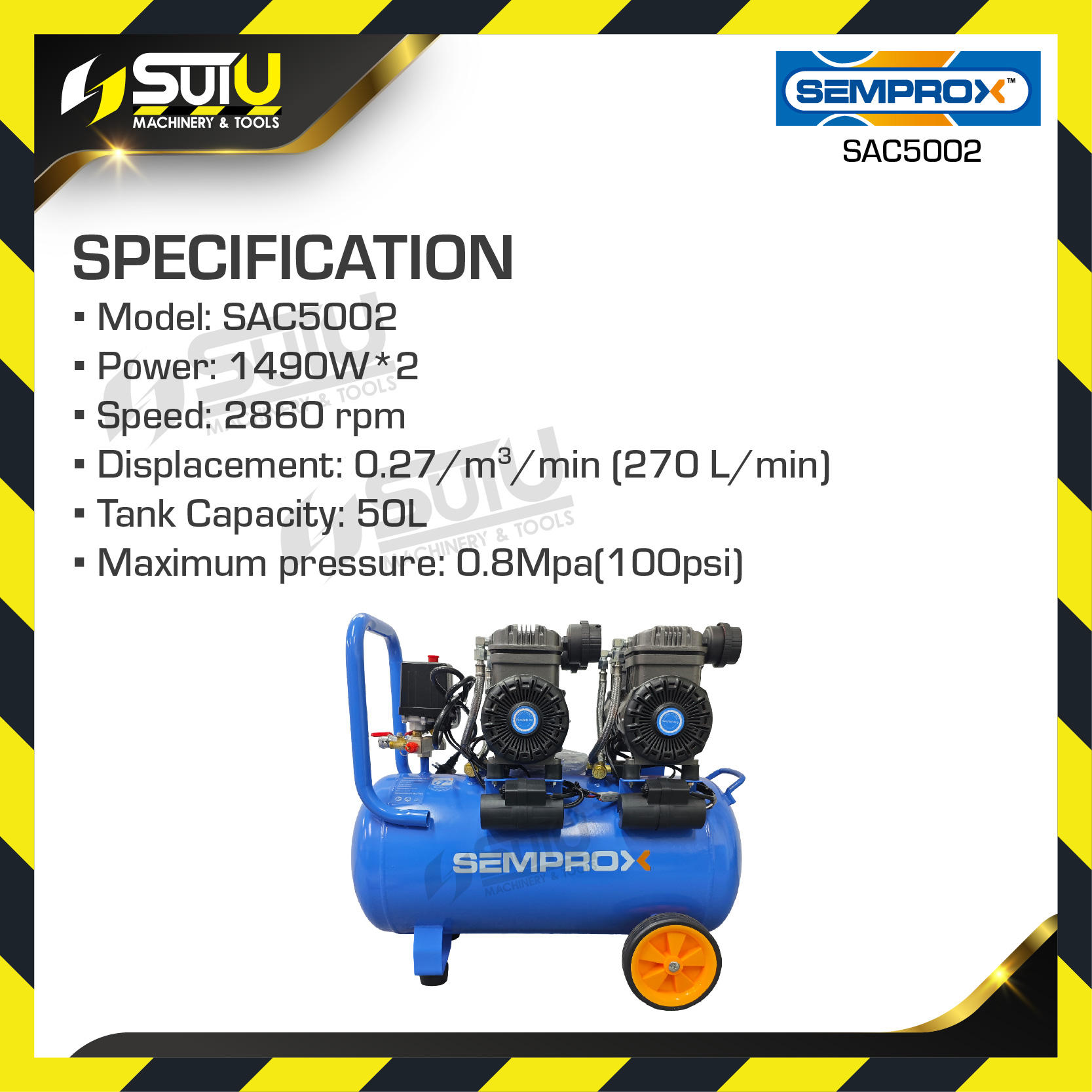 [SET A] SEMPROX SAC5002 50L 4HP Oil-Free / Oilless Silent Air Compressor / Kompressor 1490Wx2 2860RPM