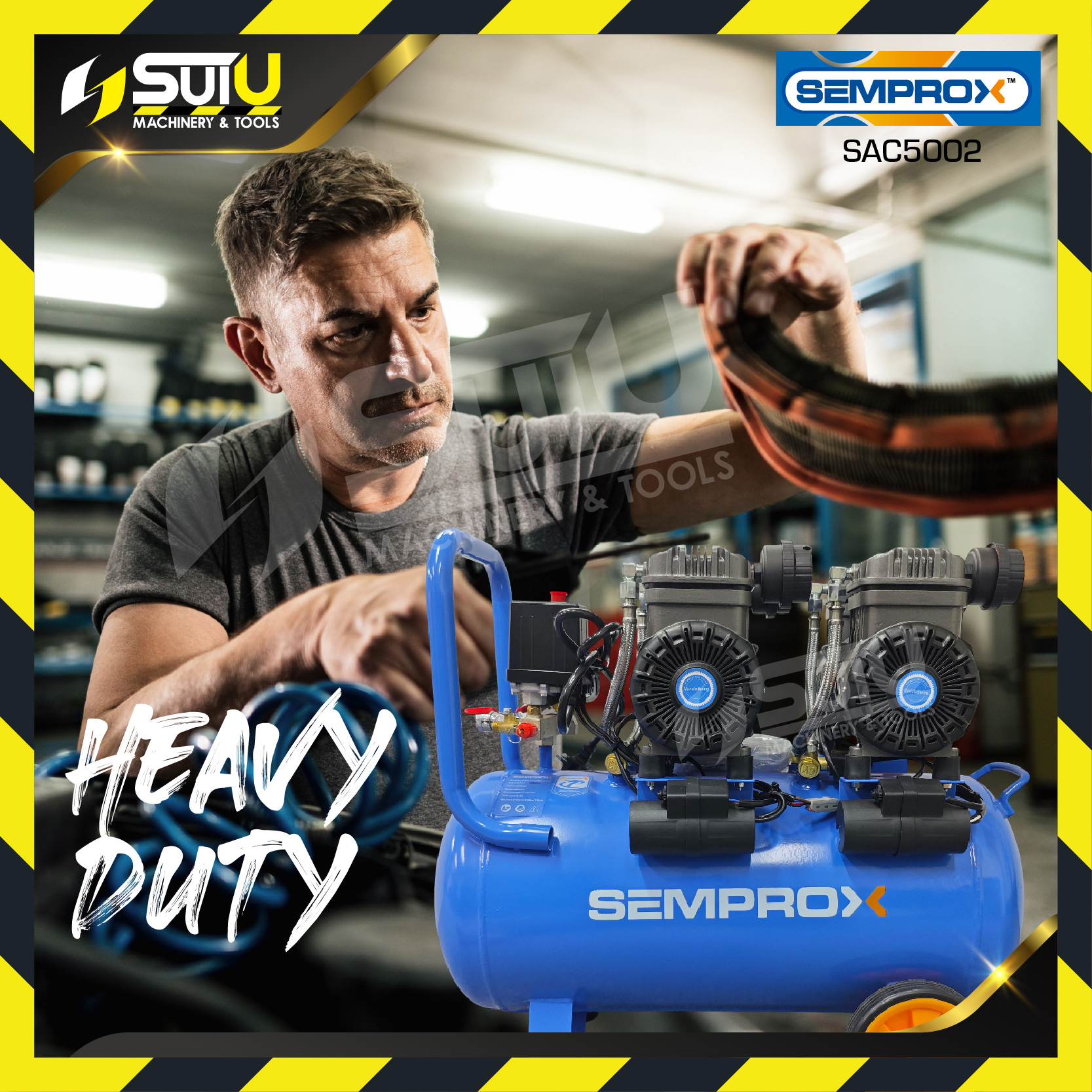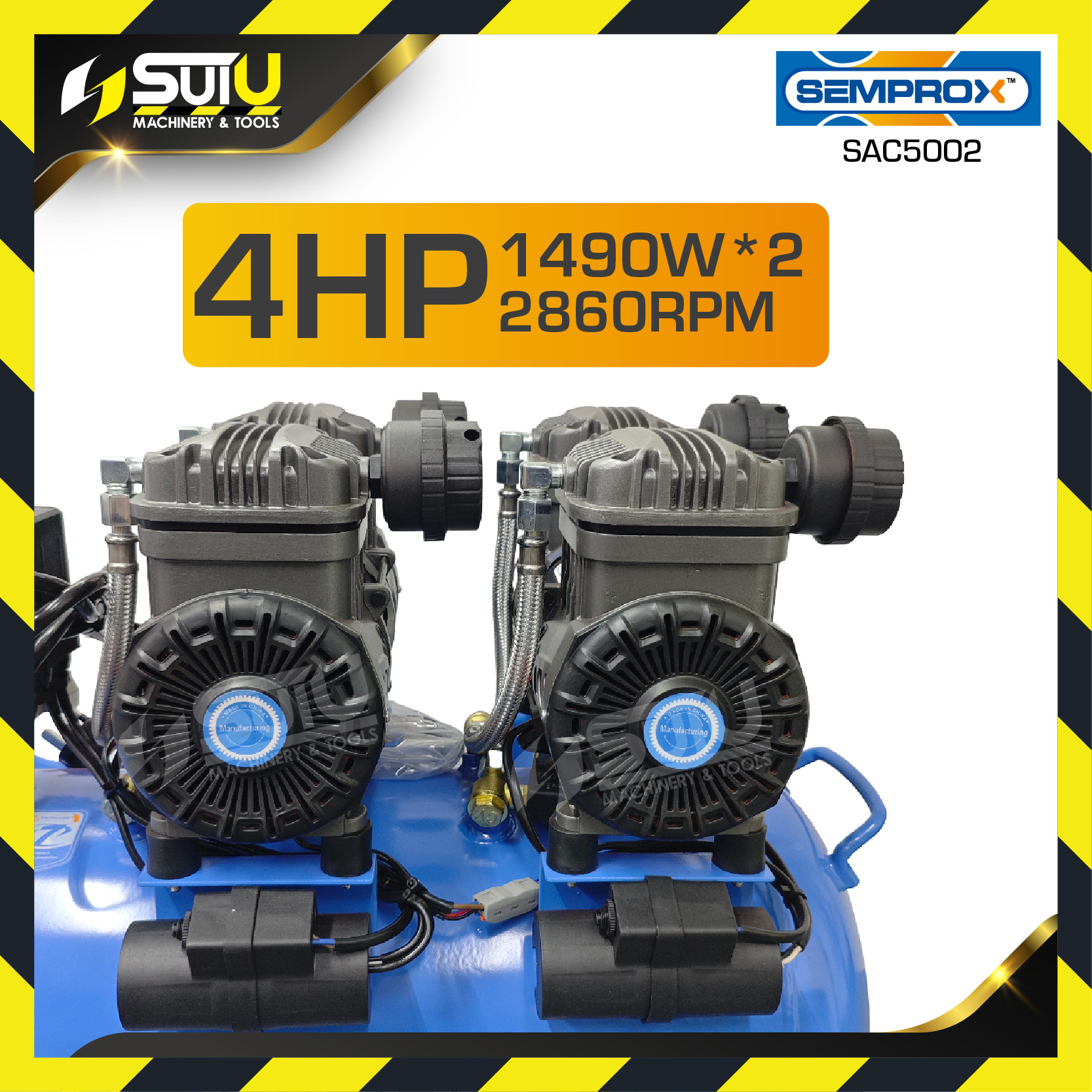 [SET B] SEMPROX SAC5002 50L 4HP Oil-Free / Oilless Silent Air Compressor / Kompressor 1490Wx2 2860RPM