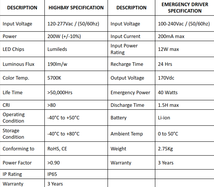 LED HighBay with Emergency Drive 200W
