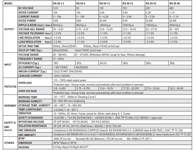 MEAN WELL RS-50 G3 SERIES
