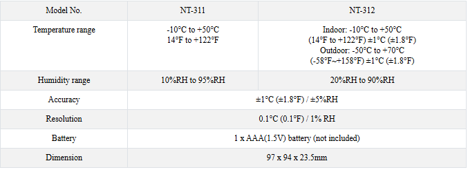 AX. and MIN. temperature and humidity memory automatic update functions.