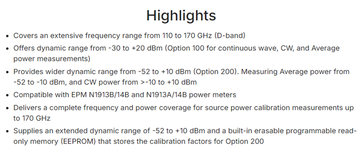 KEYSIGHT N8486DD 110 to 170 GHz Waveguide Power Sensor