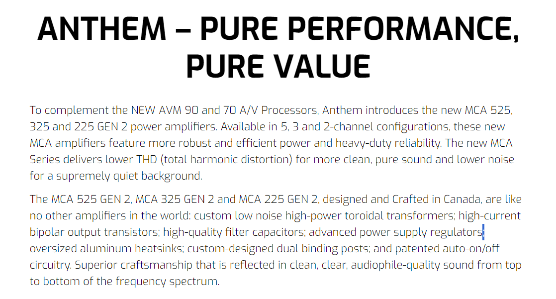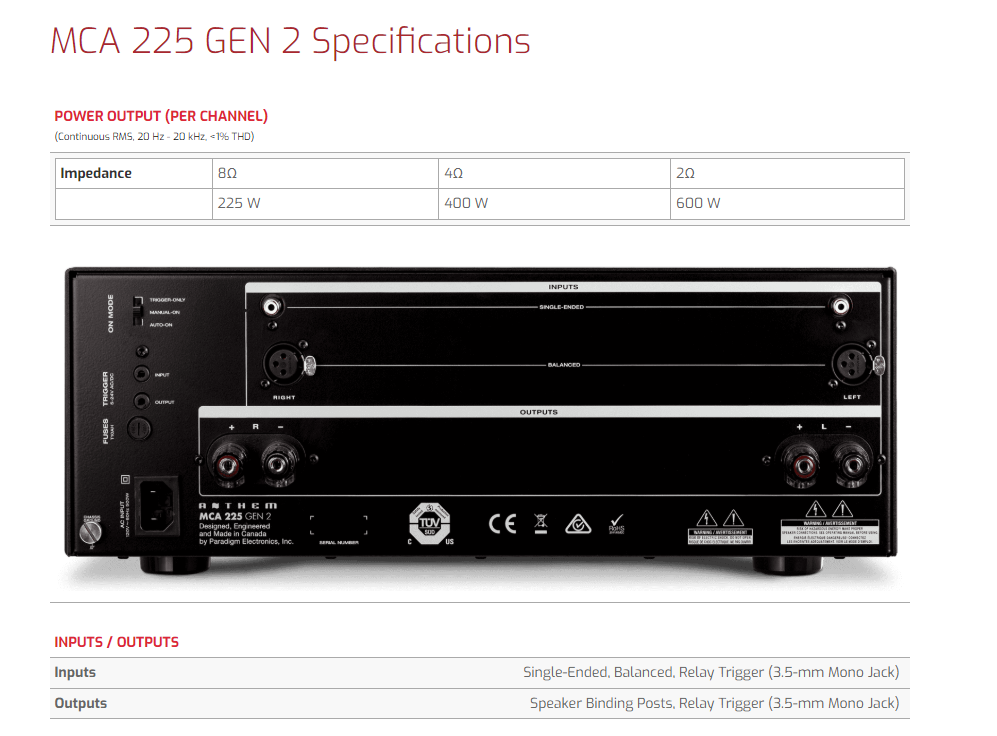 Anthem MCA Series 225 Gen2 Power Amplifier