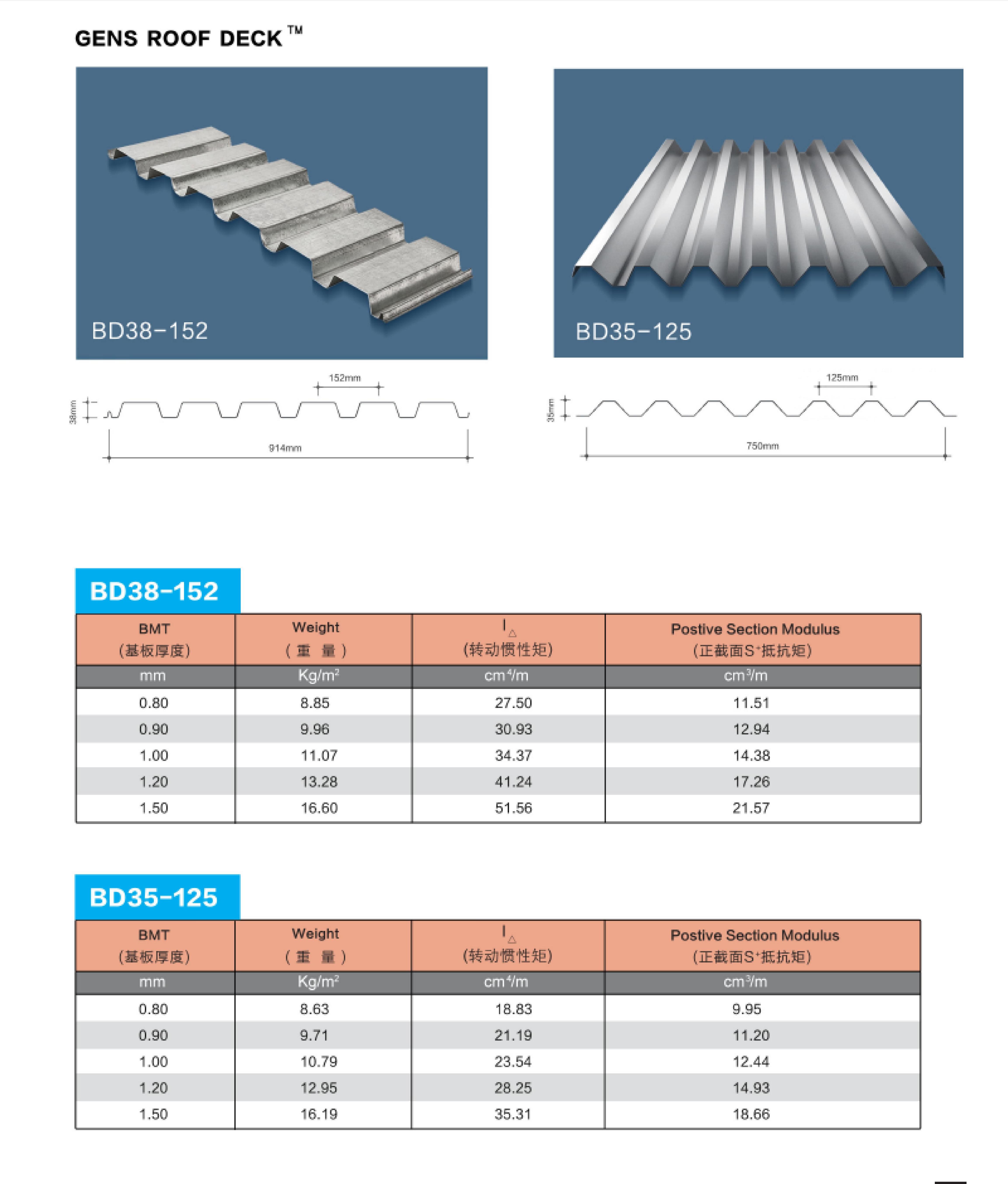 Decking products are high-performance composite floor solutions engineered for reliability and versatility, with over 30 years of manufacturing base. Our product line includes closed-profiled steel decks, re-entrant profiled steel decks, trapezoidal profiled steel decks, and integral grid hanger systems, all designed to meet global standards such as AISI S100-16, CSA-S136-16, and BS 5950. These decks offer exceptional structural integrity, fire resistance (up to 2-hour fire rating), and easy installation, making them ideal for diverse construction projects worldwide.