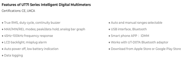 UNI-T UT71 Series Intelligent Digital Multimeters