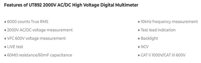UNI-T UT892 2000V AC/DC High Voltage Digital Multimeter