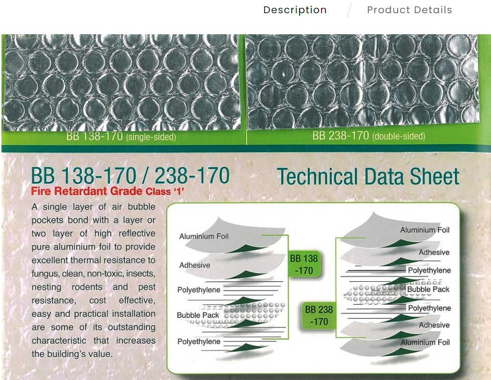 1 roll Bubble sheet Aluminium Foil is made by a double sided of pure aluminium foil and 1 layer aircore with 2 bonding layers aluminium . It provides excellent insulation properties and effective radiant barrier. It designed light weight and easy to install without require mesh. Apart from thermal insulation, it can also block noises such as rain drop in the roof.