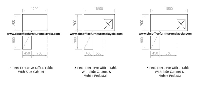 EXTON 6 KAKI MEJA PEJABAT TULIS DENGAN KABINET SISI TANPA PINTU | ||||