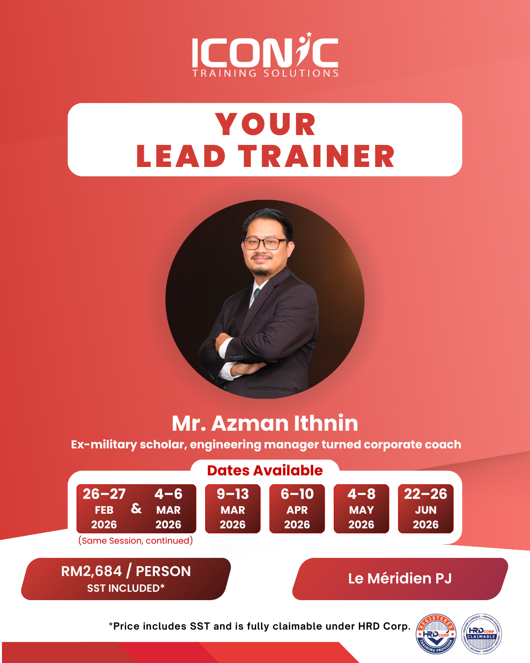 * Iconic Training Solutions Sdn. Bhd. is an appointed vendor by HRD Corp to conduct this certification course.