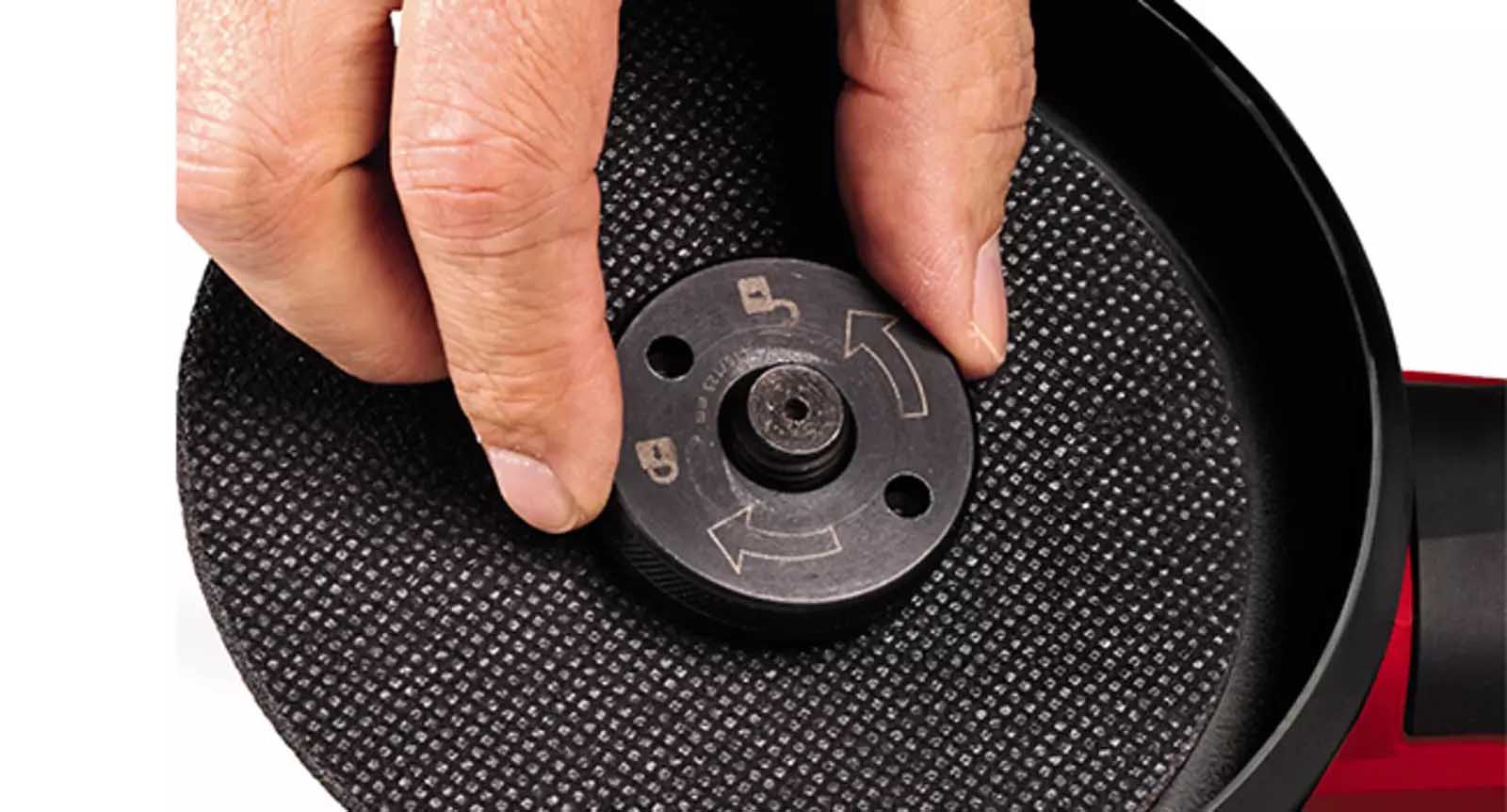 | Thanks to the quick-release nut, the cutting disc can be attached to the cordless angle grinder and changed quickly and without tools. Maximum flexibility if offered by the disc guard with quick adjustment, which can be adapted to the respective working position. | The additional handle can be flexibly mounted in two positions on the cordless angle grinder. The second handle, special softgrip surfaces and the ergonomic, slim design ensure comfortable handling - even for time-consuming tasks. |