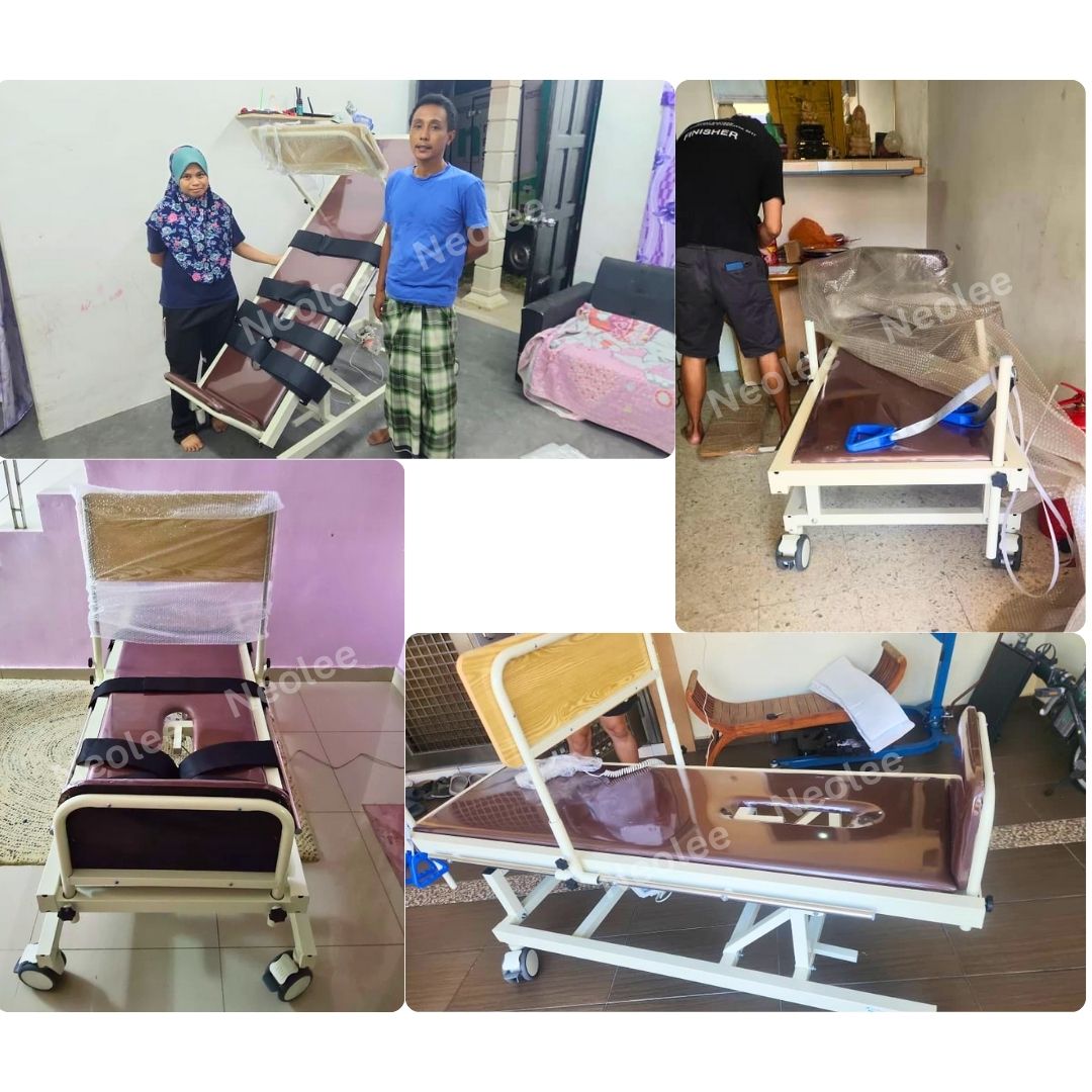 Meja Condong Rehabilitasi Elektrik ialah peralatan rehabilitasi dan fisioterapi profesional yang direka untuk membantu pesakit beralih daripada posisi baring ke posisi berdiri dengan selamat. Dengan motor elektrik yang lancar dan senyap, ahli fisioterapi atau penjaga boleh melaraskan sudut condong (0°–85°) dengan mudah, memastikan latihan rehabilitasi berjalan dengan selesa dan berkesan.