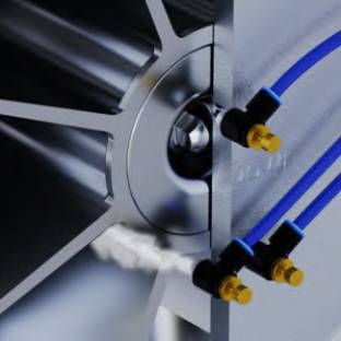 By injecting compressed air to the deep inside the rotor pockets, the shear force blow down the “sticky” materials. This method yields better results than “blow-through, ‘scraper” and caused less additional problems when dealing with the problem of material build-up