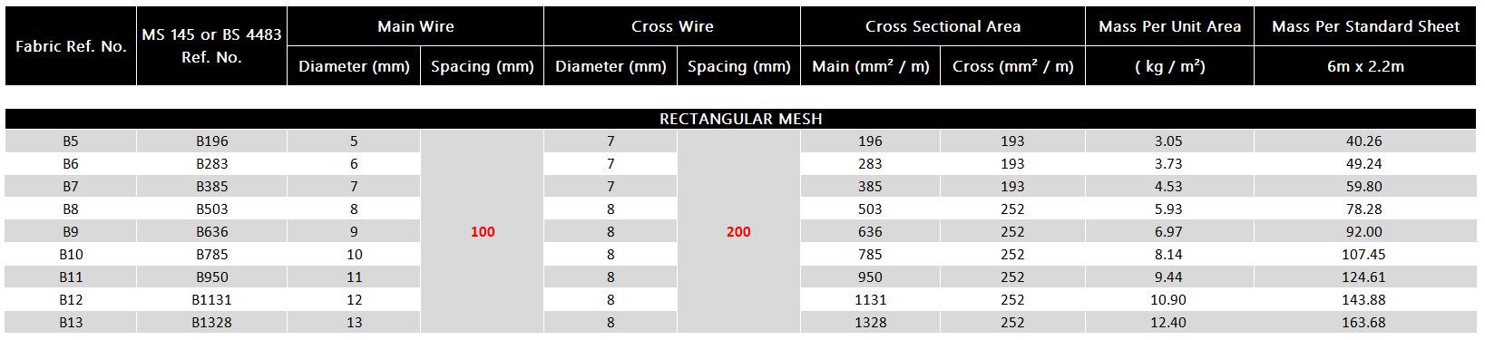 Spesifikasi Mesh Pengukuhan Fabrik Standard