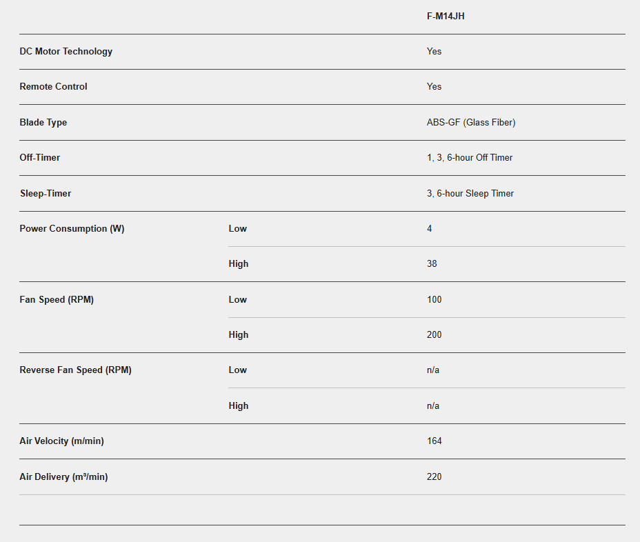 PANASONIC F-M14JHVBWH (WHITE) 5-BLADE BAYU DC REMOTE FAN