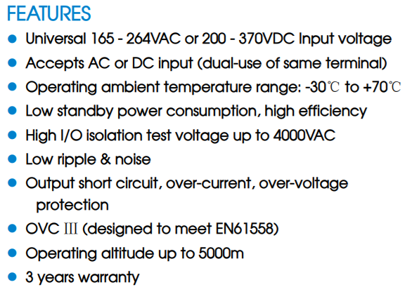 MORNSUN LM75-22B15 - AC/DC 75W ENCLOSED SWITCHING POWER SUPPLY