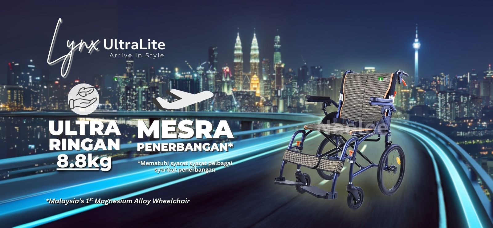 Dengan Lynx Ultralite, anda akan menikmati kerusi roda paling ringan, selamat dan kompak di Malaysia – sesuai untuk kegunaan harian, hospital atau perjalanan.