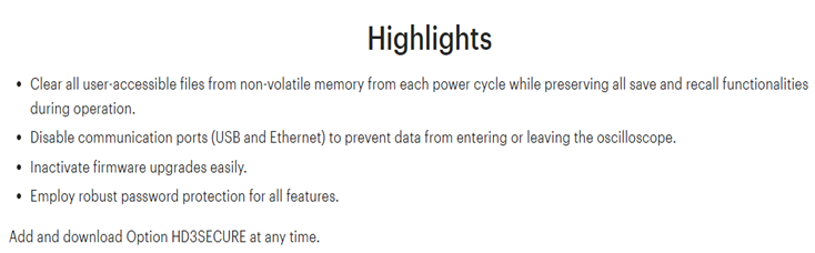 KEYSIGHT HD3SECURE Enhanced Security Option for HD3 Oscilloscopes