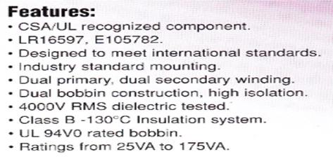 STANDEX TRCI-TRBI Series Low Voltage Rectifier Transformers
