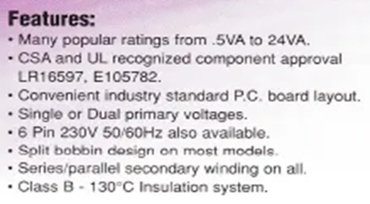 STANDEX TRP-TRPD Series Low Voltage Rectifier Transformers