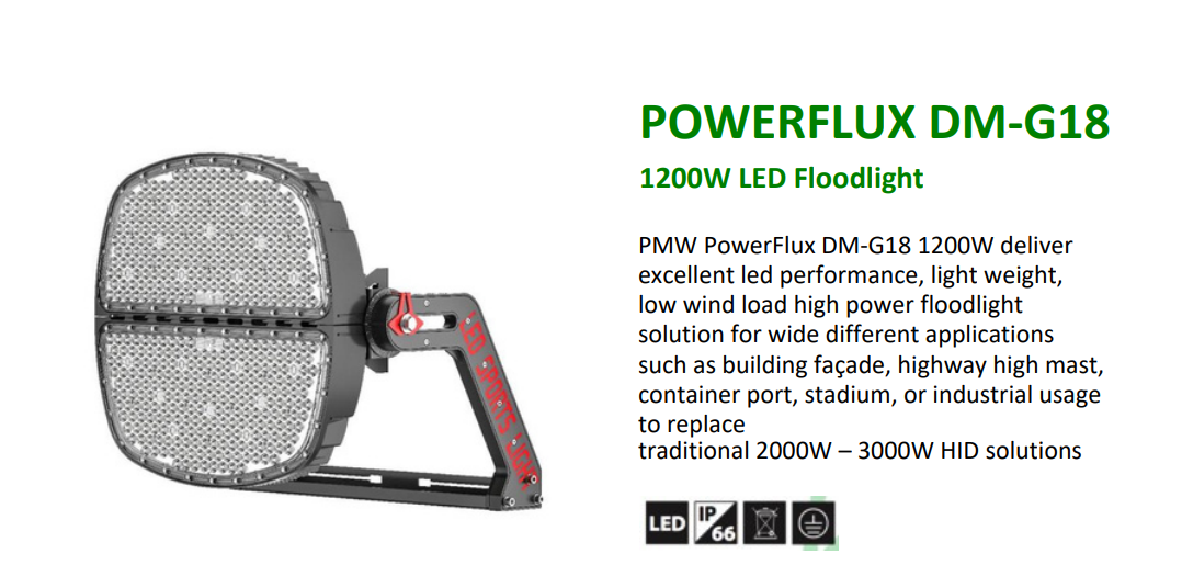 JLUX POWERFLUX DM-G18 LED FLOODLIGHT 1200W 2040000LM 50,000HRS IP66 CRI 70 [3000K/4000/5000K/5700K] [10D/15D/30D/60D]