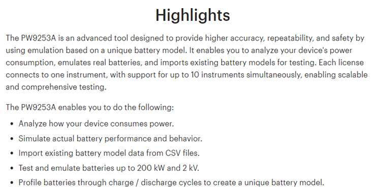 KEYSIGHT PW9253A PathWave Advanced Battery Test and Emulation