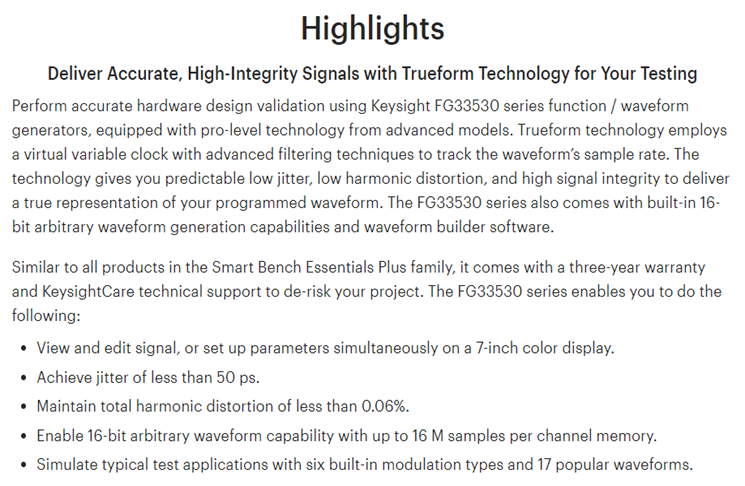 KEYSIGHT FG33530 Series Waveform and Function Generator