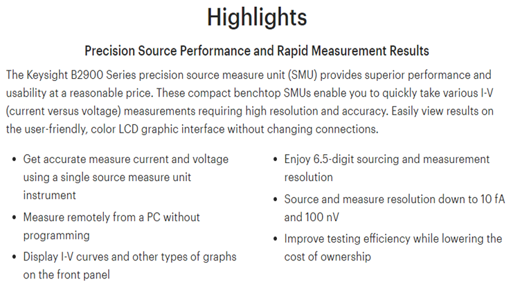 KEYSIGHT B2900 Series Precision Source / Measure Units (SMU)