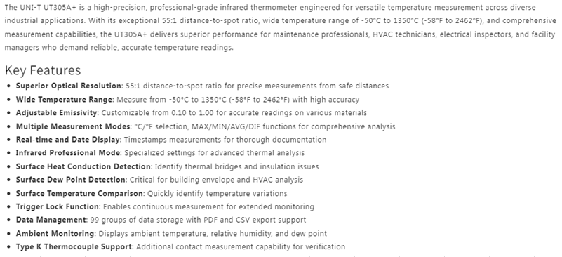UNI-T UT305A+ Professional High-Precision Infrared Thermometer