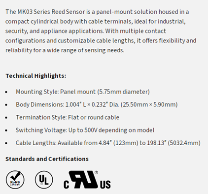 Standex-Meder MK03-1A66E-500W Reed Sensors