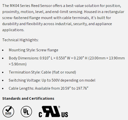 Standex-Meder MK04-1A66B-500W Reed Sensors