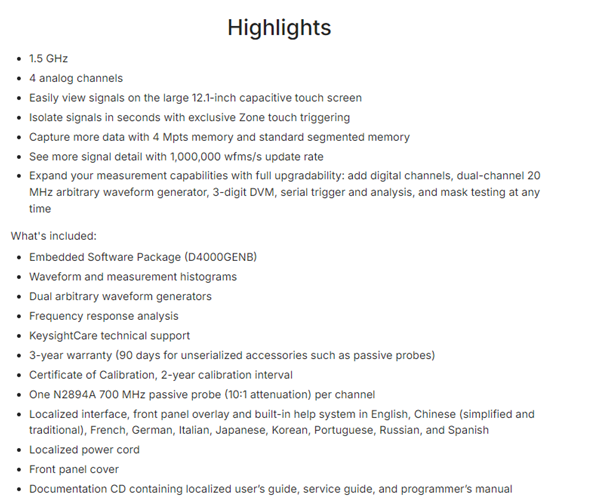 Keysight DSOX4154G Oscilloscope: 1.5 GHz, 4 Analog Channels