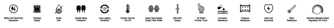 Upgrade your bathroom with the REZO VORTEX45P 4.5kW DC Pump Water Heater. Features a slim Matt White design, durable construction, and precise touch-screen control. Complete with IP25 splash protection and built-in Voltage Leak Detection for peace of mind.