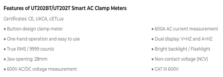 UNI-T UT202BT/UT202T Smart AC Clamp Meters