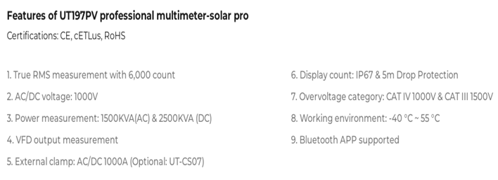 UNI-T UT197PV professional multimeter-solar pro