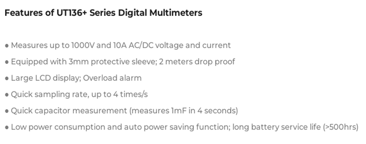 UNI-T UT136+ Series Digital Multimeters