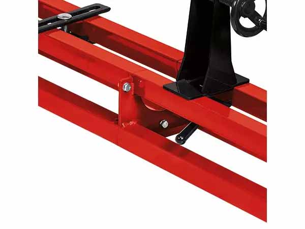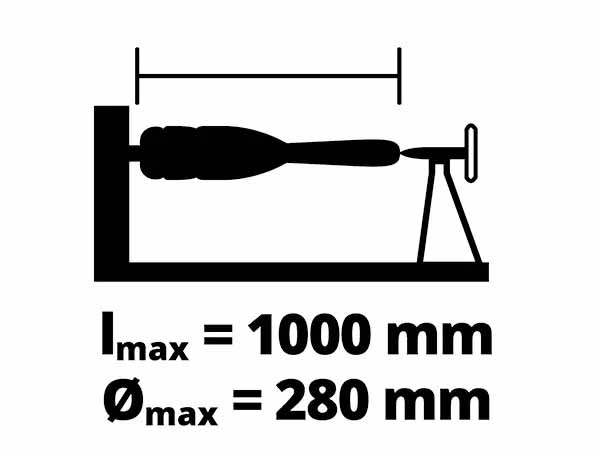 | With 4 adjustable speed levels (890, 1260, 1760 & 2600 rpm) for fine dosing. | Workpieces with a diameter of 280 mm and a tip width of 1000 mm can be clamped. | Thanks to the double guide frame, the construction is held torsionally rigid. |