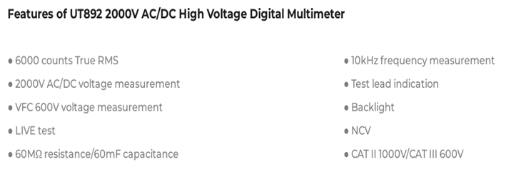 UNI-T UT892 2000V AC/DC High Voltage Digital Multimeter