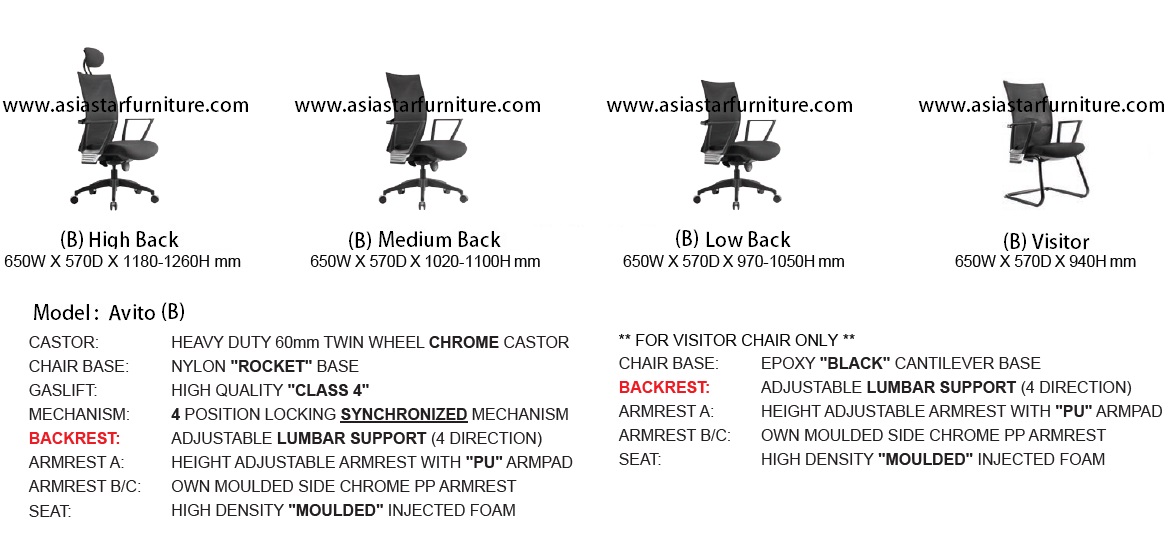 AVITO (B) MEDIUM BACK SIZE | : | 650W X 570D X 1020-1100H mm |