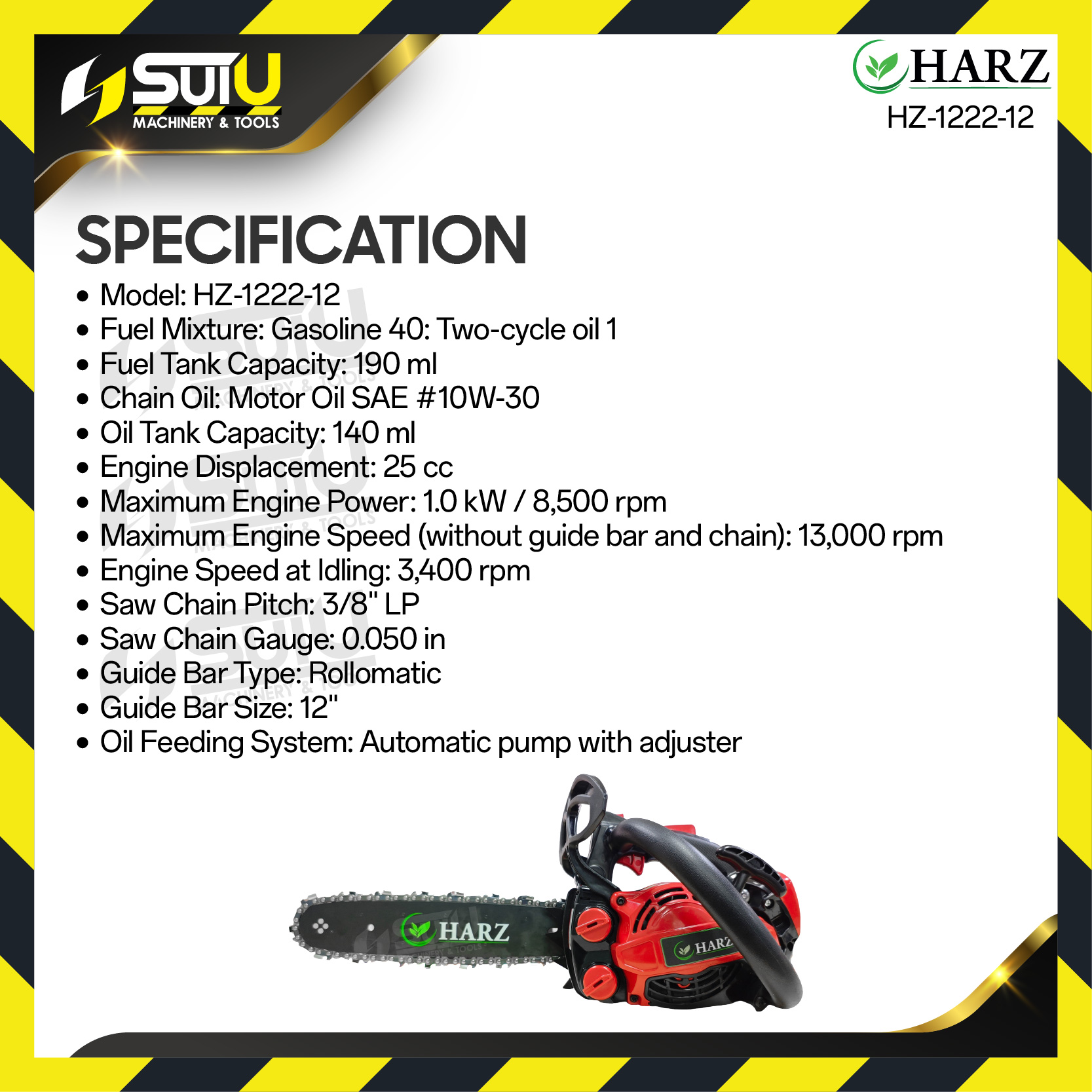 - Chain Oil : Motor Oil SAE #10W30
