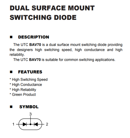 UTC - BAV70 DUAL SURFACE MOUNT SWITCHING DIODE