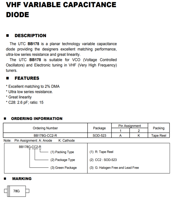 UTC BB178 VHF VARIABLE CAPACITANCE DIODE