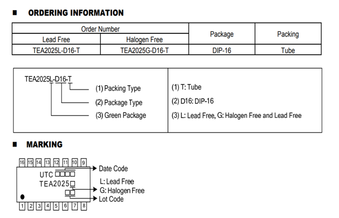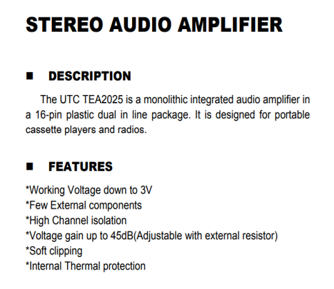 UTC TEA2025 STEREO AUDIO AMPLIFIER