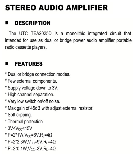 UTC TEA2025D STEREO AUDIO AMPLIFIER