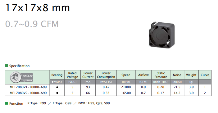 SUNON MF17080V2-10000-A99 17X17X8MM MAGLEV MOTOR FAN