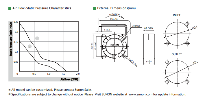 SUNON MF20080V2-10000-A99 20X20X8MM MAGLEV MOTOR FAN