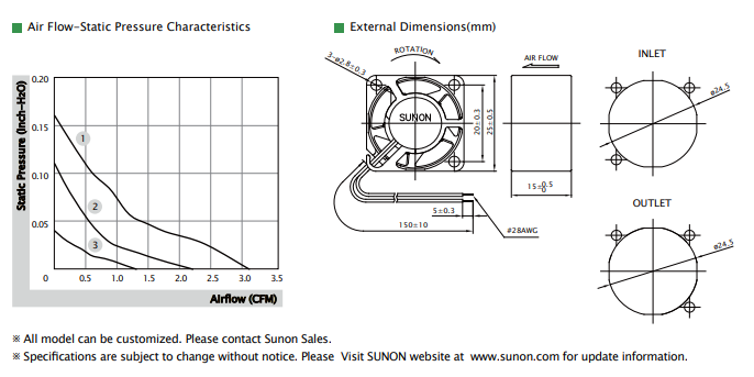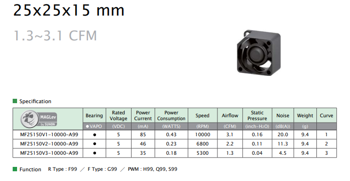 SUNON MF25150V1-10000-A99 25x25x15MM MAGLEV MOTOR FAN