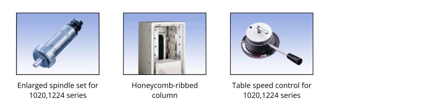 •Enlarged spindle set is supported by four preloaded precision angular contact ball bearings for heavy duty.
