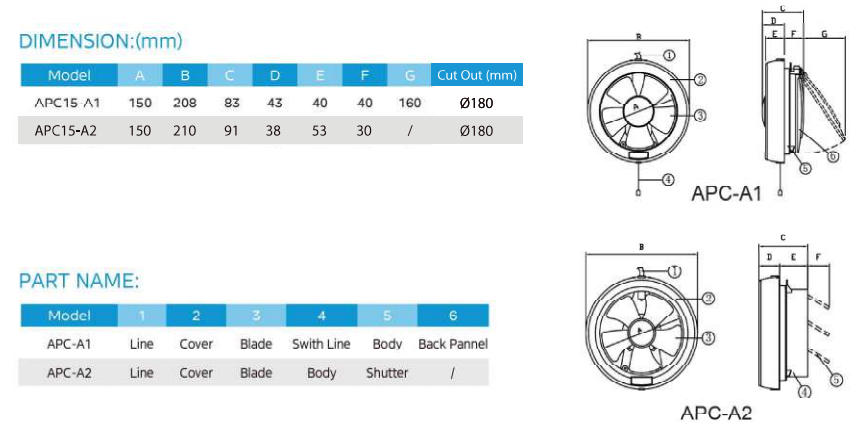 MIDEA Shop Window Mounted Exhaust Fan 7W - APC15-A2 150