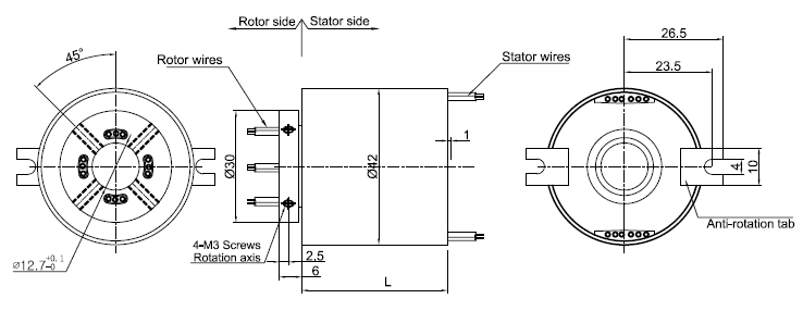 and rotor for simplified electrical connections.It can transmit signal(2A), 5A current when 360° degree