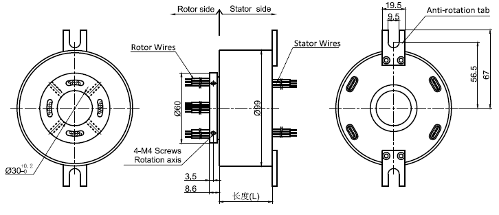 and rotor for simplified electrical connections.It can transmit signal(2A), 10A, multiple 10A current
